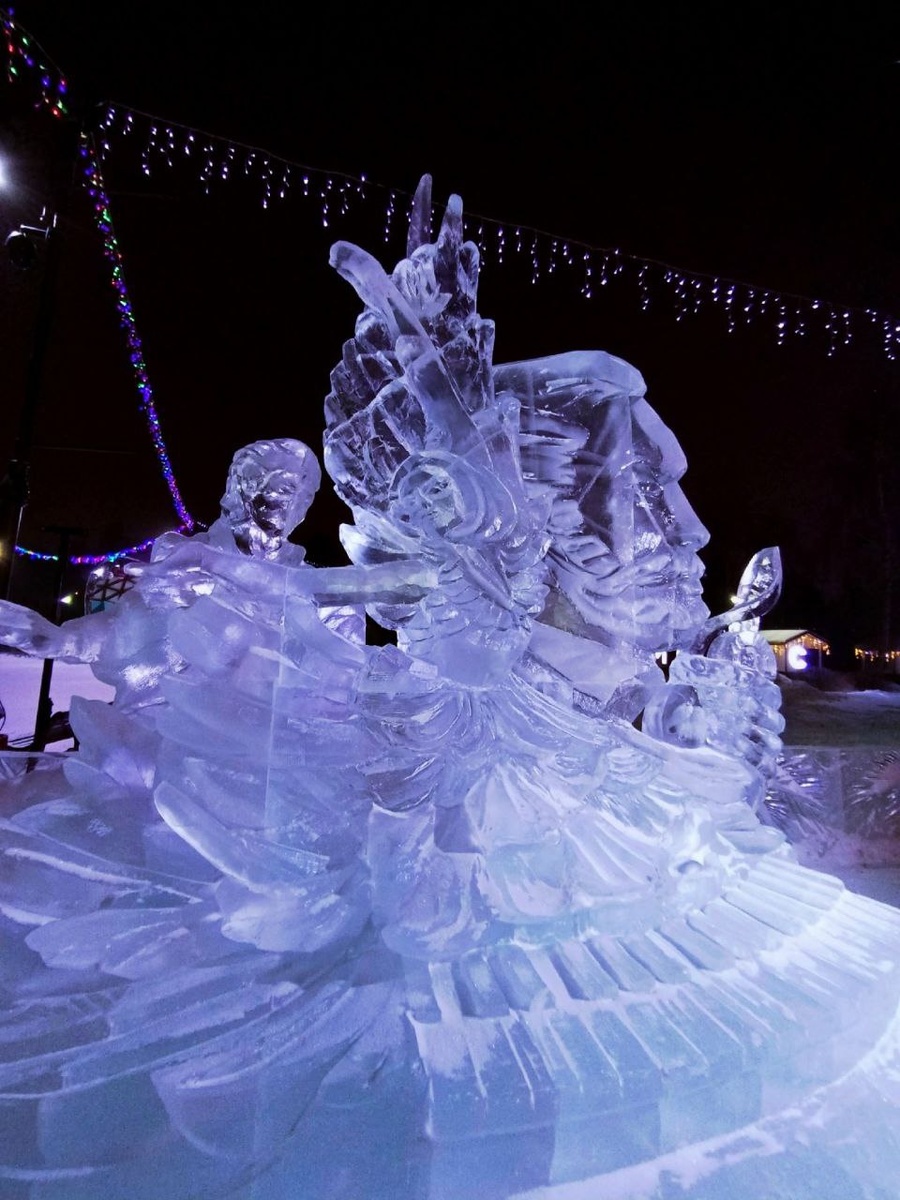 Томск» 2025 Международный фестиваль ледовой скульптуры «Хрустальный Томск» проходит с 2014 года в декабре на площади Новособорной. Резчики создают ледовые скульптуры, которые остаются там до конца зимы. Каждый год у фестиваля есть определенная тема. «Моя Родина Россия» - тема фестиваля 2025 года. Кошкарева Е. Ю. и художник Сафронов П. создали ледовую скульптуру «Чайковский. Лебединое озеро.»