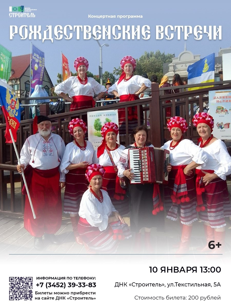 » 🗓Когда: 10 января в 13.00 📍Где: Дворец национальных культур «Строитель», ул. Текстильная, 5А 💳200 рублей ⚠6+ Дорогие зрители! Приглашаем вас провести тёплый зимний день в атмосфере рождественского праздника, народных традиций и искреннего творчества. ✨ В программе: • выступление ансамбля «Позитивушки» • номера хореографической студии «Утро планеты» • песни ансамбля украинской песни «Зорицвит» Гостей ждут настоящие колядки, народные песни, а также изящество и мастерство юных танцоров. Дополнит праздничную атмосферу выставка декоративно-прикладного творчества, где будут представлены рушники и вышиванки — яркие образцы народного искусства и мастерства. Создадим праздничное настроение вместе! Ждём вас на концерте «Рождественские встречи» ✨ 🎫 Цена билета: 200 рублей Билеты на сайте 👉 clck.ru/3Qz3ip 📱 Информация по телефону: +7 (3452) 39-33-83 #Тюмень #tyumen #ктокуда72 #ktokuda72 #10_январь_2026@afisha_kto #концерт@afisha_kto