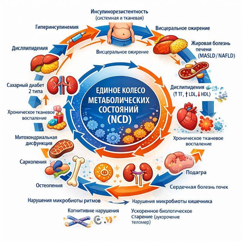 Быть Кассандрой — так себе затея, но из песни слов не выкинешь. Продолжая тренды в сфере здоровья: думаю, в ближайшие 5 лет у нас появится общий враг. Нет, не очередной ковид, и нет он не убивает мгновенно. Он будет точить нас медленно, постепенно ухудшая самочувствие и заставляя тратить всё больше денег на поддержание приемлемого состояния. По моим оценкам, он коснётся каждого второго взрослого в мире — если не нас самих, то наших близких. И этот враг — карусель метаболических расстройств. В центре этой карусели — инсулинорезистентность. За последние 25 лет число людей с ИР удвоилось: из преддиабета она превратилась в обыденное состояние каждого 4-го взрослого на Земле. ➡️Лучший друг ИР — висцеральное ожирение: тот самый дряблый живот. Это наглядный маркер того, что происходит — внутри органы обрастают жиром точно также, в первую очередь печень. ➡️Жировая болезнь печени сегодня есть у 38% взрослых (10 лет назад — около 25%). И дело не только в алкоголе: весь наш образ жизни этом
