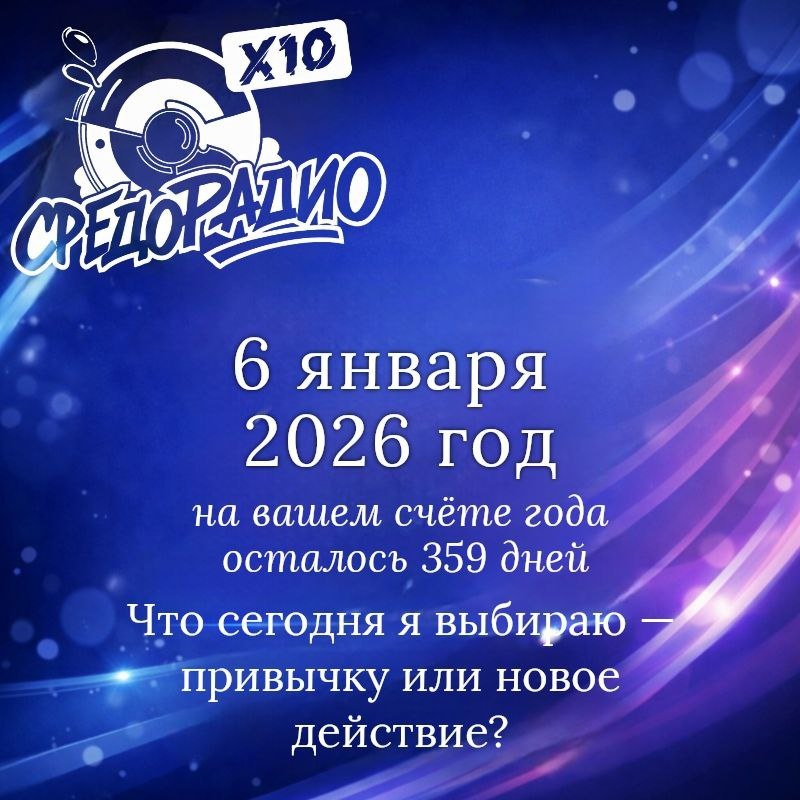 На вашем счёте года осталось 359 дней. Каждый день — как чистая частота. «Что сегодня я выбираю — привычку или новое действие?» Средорадио звучит для тех, кто умеет слышать себя и мир чуть глубже. Пока играет эфир — попробуйте прожить этот день внимательнее, чем обычно. 💬 Поделитесь в комментариях: что помогает вам оставаться осознанными? 🎥 Запишите короткое видео или голосовое — мы с радостью услышим вас в эфире. БУДЬТЕ С НАМИ, СЛУШАЙТЕ СРЕДОРАДИО! Эфир: https://myradio24.com/5559 Приложение MyRadio24: https://dzen.ru/media/sredoradio/-68945075272f5b1d26ed07e3 ТГ: https://dzen.ru/id/68347b0544414e3a879796a0 группа ВК vk.com/sredoradio
