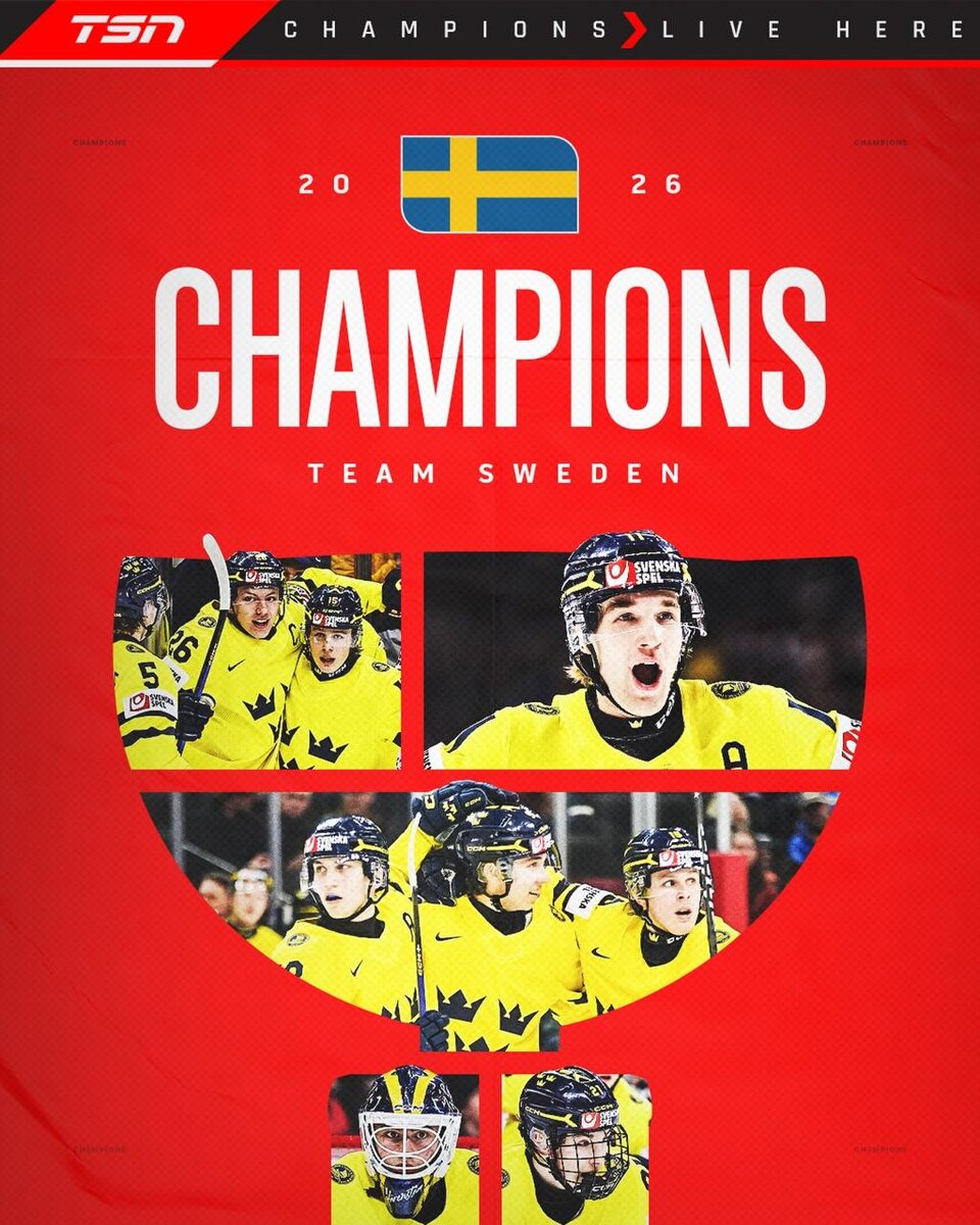 ⚡️🇸🇪 Сборная Швеции одолела Чехию (4:2) и выиграла золото молодежного чемпионата мира по хоккею