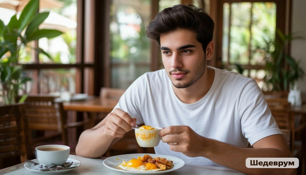 Утром Дима приготовил завтрак на двоих, скрипнула по полу табуретка, поднялась чашка с ароматным какао, опустилась обратно на стол…