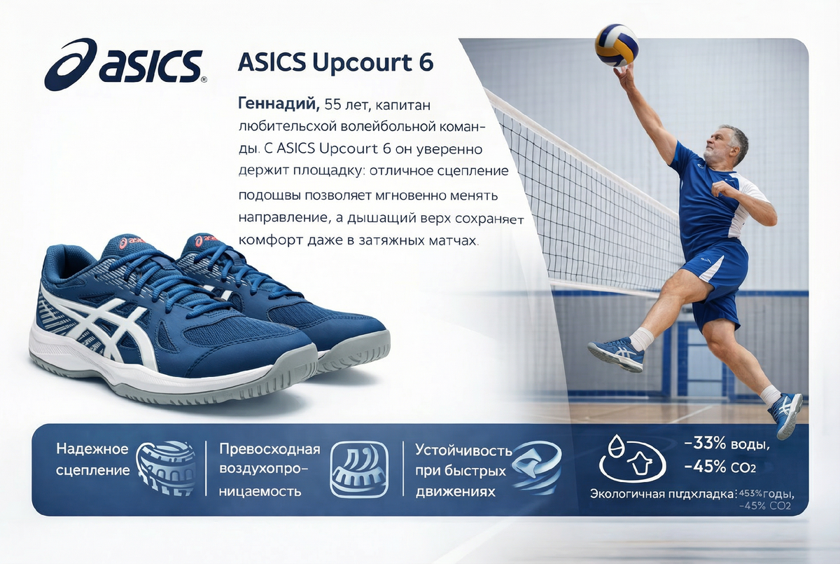 ASICS Upcourt 6: Идеальные мужские кроссовки для волейбола, бадминтона и активного образа жизни – обзор 2026