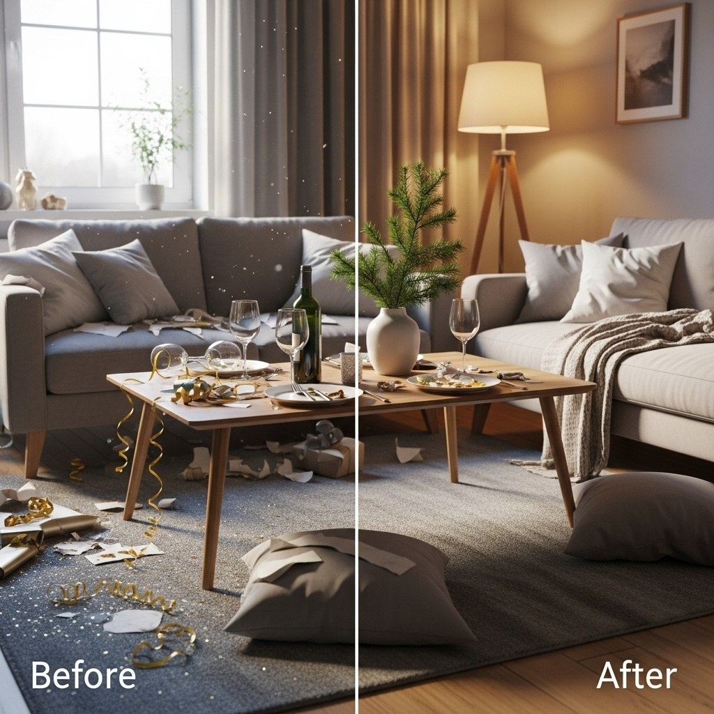 ». Всего один день разницы! 🧹✨ Финал праздников vs. Начало спокойной жизни. Вот что делает профессиональная уборка. Слева: Море обёрток, хлопушек, пыль от конфетти и целый штабель посуды. Настроение «ой, всё». Справа: Глубокий выдох, идеальный порядок и ощущение свежести. Можно начинать новый год с чистого листа (и чистого пола). Мы специализируемся на таких преображениях. Если ваш дом ещё в левой части коллажа, а вы мечтаете о правой — просто закажите у нас уборку. Справимся быстро и без лишнего стресса для вас. Ваш «Хороший Клининг», г. Кемерово. #уборка #Кемерово #допосле #клининг #новыйгод 📞+79059665551 VK https://vk.com/horoshiiklining ТГ https://dzen.ru/id/65aa12a3aba0f104e7c42c2a