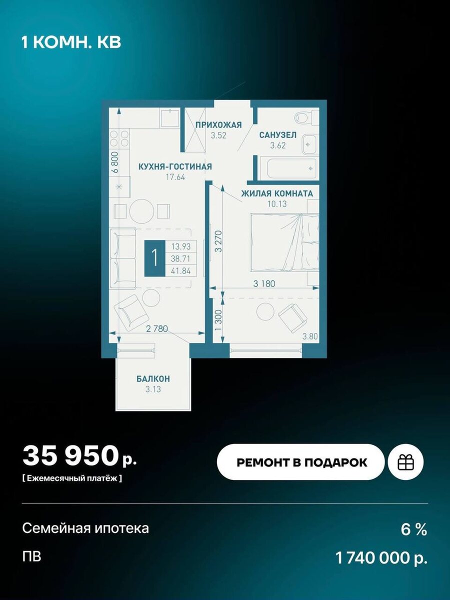 🚀 Найти квартиру с «изюминкой» и при этом не переплатить — задача со звездочкой. Но эта квартира, кажется, закрывает все вопросы. Что в ней особенного? 🔹 Тот самый балкон: Металлический профиль — это не просто красиво, это статус и современный стиль вашего дома. 🔹 Площадь 39,65 м²: Места хватит для всего, а лишних метров, за которые нужно платить, — нет. 🔹 Пакет «Все включено»: Ремонт идет в подарок. Это экономия сотен тысяч и вашего времени. Математика комфорта: ▫️ ПВ: от 1 740 000 ₽ ▫️ Платеж: 35 950 ₽/мес. ▫️ Ставка: 6% (Семейная ипотека) Готовое решение для тех, кто не хочет ждать. Как вам планировка? Все вопросы: 📱 Светлана Шаповал 📞 +7-918-45-245-95 📱 WhatsApp 📱 Нельzяграм 📱 ВК