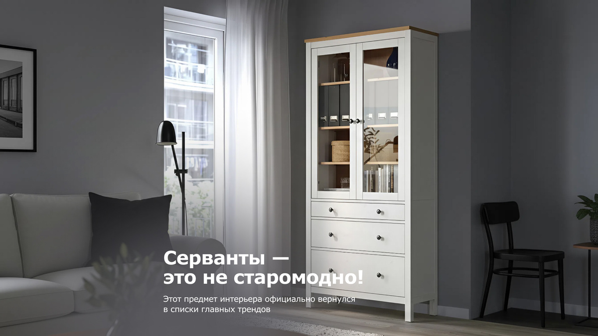Долгое время серванты считались пережитком прошлого, ассоциируясь исключительно с массивными гарнитурами советской эпохи. Однако сегодня этот предмет мебели переживает триумфальное возвращение. Дизайнеры переосмыслили концепцию хранения: на смену глухим фасадам пришла прозрачность, легкость и акцент на внутреннем наполнении. Современный сервант — это уже не склад для сервизов, которые достают раз в год. Это персональная галерея, позволяющая интегрировать ваши увлечения и вкус в пространство комнаты. Главное преимущество актуальных моделей — обилие стекла. В отличие от закрытых шкафов, витрины не «съедают» пространство. Отражения на стеклянных поверхностях и возможность установки внутренней подсветки добавляют интерьеру глубины. Если вы стремитесь создать атмосферу скандинавского уюта с элементами ретро, обратите внимание на сервант Кымор. Сочетание белого цвета и светлого дерева визуально облегчает конструкцию, а наличие выдвижных ящиков позволяет комбинировать открытое хранение декора
