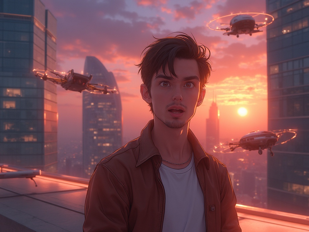 Друзья, представляю сцену. Солнце садится за стеклянные небоскрёбы, и над улицей появляется маленькая группа светящихся аппаратов, точно из фильма. Один аппарат плавно снижает траекторию к крыше отеля, где уже ждёт пассажир.