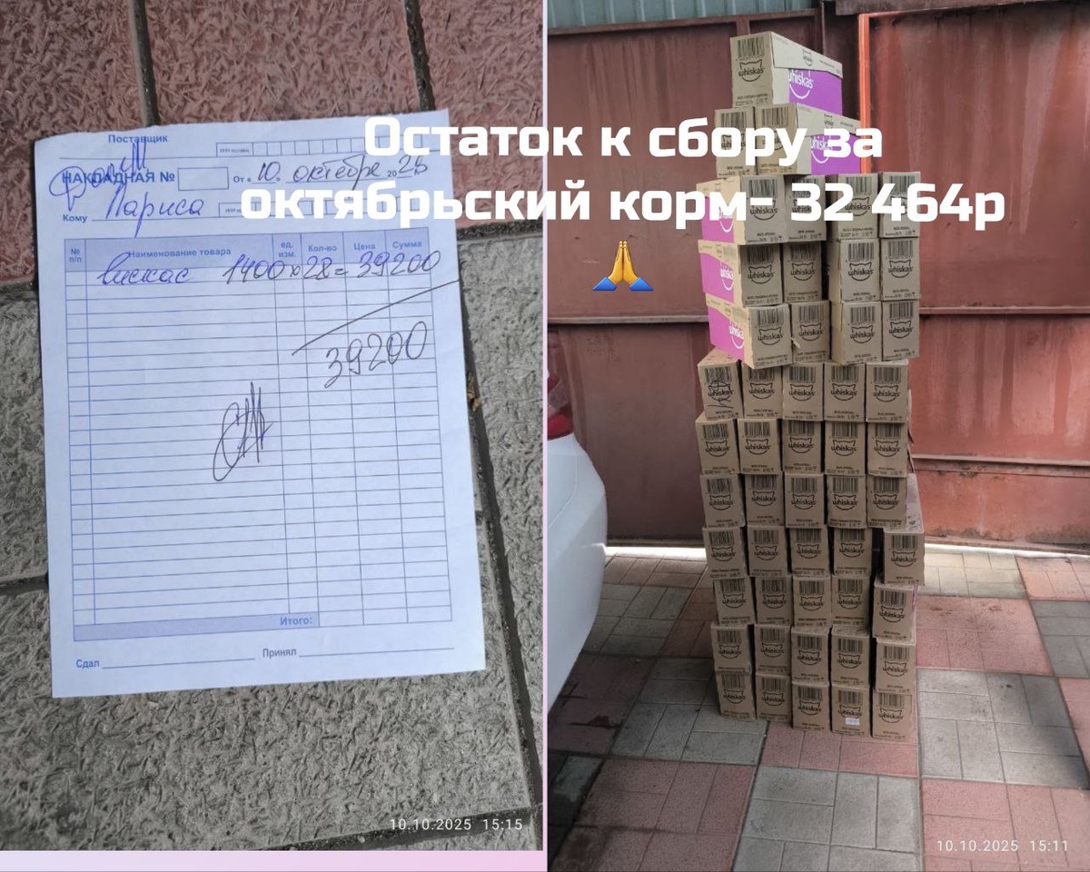 !!🙏 Друзья! Мы продолжаем сбор на часть октябрьских долгов за корм!! Нам никак нельзя останавливаться, тк впереди долгов ещё очень много 😔 Мы очень надеемся, что вы нам поможете!🙏 Важна любая посильная сумма, друзья!! Спасибо!❤️ ✅РЕКВИЗИТЫ ПОМОЩИ С ОБЯЗАТЕЛЬНОЙ ПОМЕТКОЙ "ДОБРОВОЛЬНОЕ ПОЖЕРТВОВАНИЕ", во все нижеперечисленные банки, больше ничего писать не нужно...только 2 эти слова!! Это важно, тк при подозрительных транзакциях могут заблокировать карты: Сбербанк 4276521290015597 - Андрей Анатольевич С ☎️ 89515869902 , привязан к СБ, ВТБ, Т-банк, Райффайзен, Совкомбанк на имя Маргариты Ж Т-банк 2200700108267526 на имя Маргариты Ж 🏦 Райффайзен 2200300515176962 на имя Маргариты Ж Альфа банк 2200154581134243 Андрей Анатольевич С, привязан телефон +79897192083. Paypal по запросу. Юмани: 410017055194074 на Полину, волонтёра приюта #отчёт