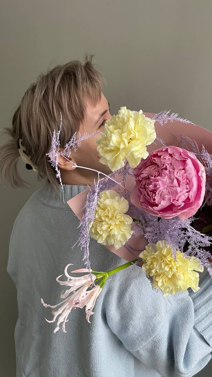 🤭💗 Пионы, веточки березы, нерине — такие нежные букеты у нас сегодня: 🩷 в лавандовом 2300 вместо 2800.- амариллис/клематис/леукадендрон/диантус/туя 🎂в розовом 2350 вместо 2850.- пион сара бернар/нерине/аспарагус/диантус 😒в сером 2000 вместо 2400.- гортензия/диантус/роза ес ай ду/можжевельник/береза Для заказа: @mateflowers_bot