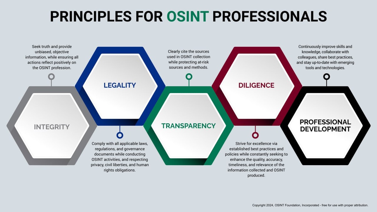 иголки в стогах интернета. Но те из нас, кто занимается этим профессионально, знают: наше ремесло держится не только на технологиях. Его фундамент — это принципы. Те самые невидимые скрепы, которые превращают разрозненные данные в достоверную информацию, а исследователя — в настоящего профессионала. Всё начинается с миссии. Наша работа — не подтверждать удобные версии и не создавать нарративы. Она — в объективном и беспристрастном поиске фактов. Каждое наше действие, каждый отчет — это кирпичик в репутации всего OSINT-сообщества. Мы несем ответственность не только перед заказчиком, но и перед профессией в целом. 1⃣Законность. Мы работаем строго в рамках применимых законов, нормативных актов и корпоративных политик. Но важно идти дальше формальностей: уважение к приватности, гражданским свободам и правам человека — это этический императив. Наша сила — не во вседозволенности, а в умении находить ответы, не переступая границ. 2⃣Честность — это прозрачная атрибуция источников. Четкое ука