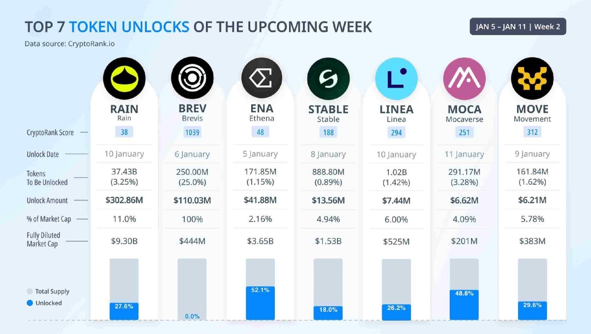 🔸Топ 7 токенов, которые разблокируют на этой неделе