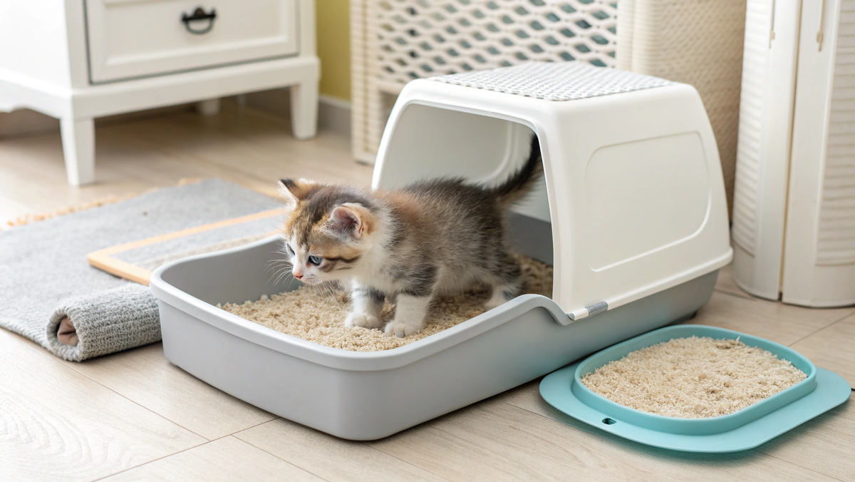 Котёнку нужна безопасная среда на уровне пола. Всё низкое, доступное, без острых углов и мелких предметов.
