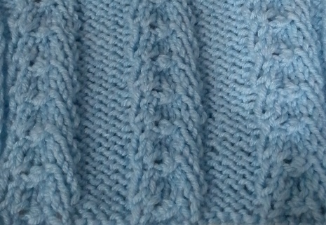 Узор подходит для шапок, свитеров, снудов, оформления резинки. РАППОРТ УЗОРА: Число петель кратно 10, плюс 2 кромочные. 1 - й ряд: *3 изнаночные, 5 лицевых, 2 изнаночные*. 2 -й и 4 - й ряды: *2 лицевые, 5 изнаночных, 3 лицевые*. 3 - й ряд: *3 изнаночные, прибавить 1 лицевую перекрученную, 1 лицевая, 3 вместе изнаночной, 1 лицевая, прибавить 1 петлю, подняв нить между петлями, 2 изнаночные*. 5 - й ряд: повторять с 1 - го ряда.