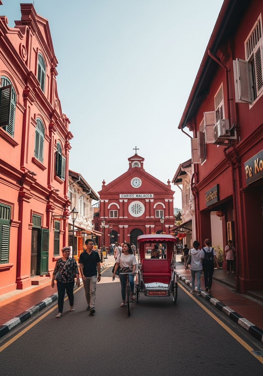 Сердце исторического центра Малакки — яркая площадь с терракотовыми зданиями, которая моментально переносит в эпоху колониальных империй. Каждое строение здесь хранит следы голландского, португальского и британского владычества, создавая уникальную атмосферу европейской Азии.