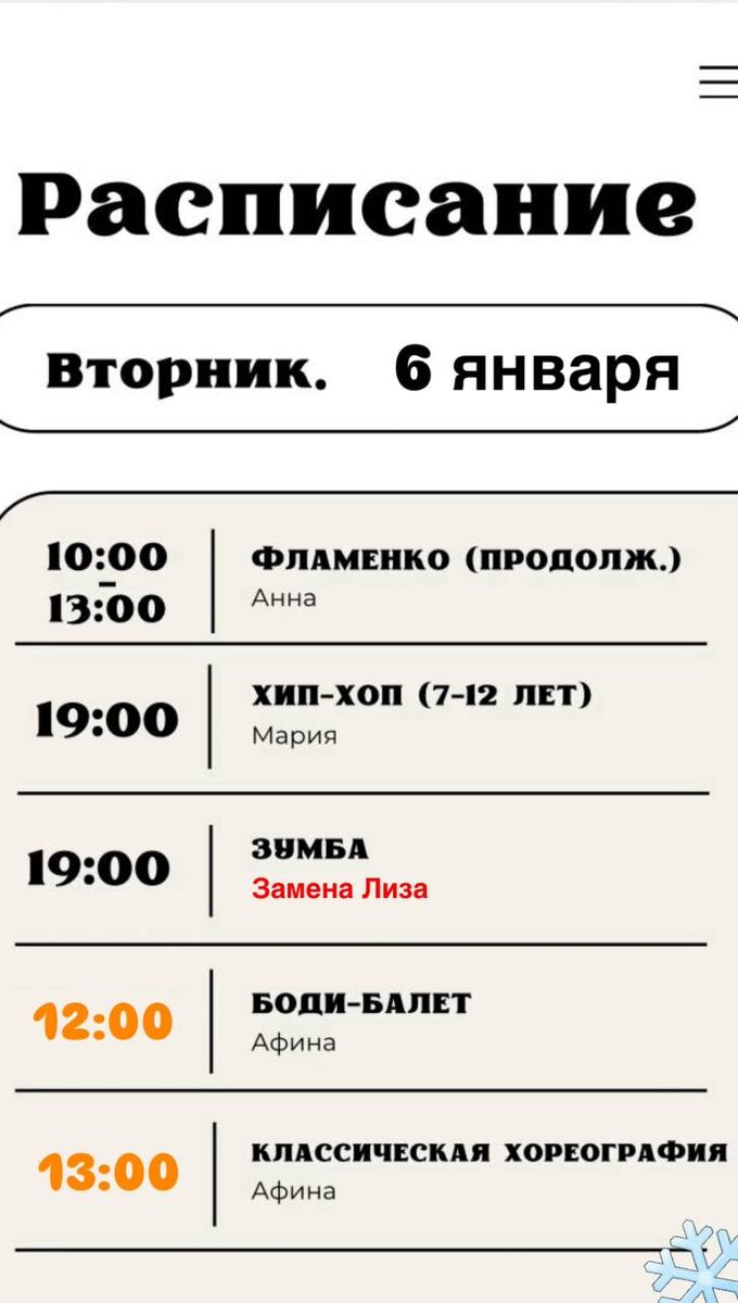 ❗️ У нас небольшие изменения в расписании: 🩷Боди-балет в 12:00 🩷Классическая хореография в 13:00 🩷Зумба в 19:00 - Замена Лиза Только на текущей неделе, обратите внимание ❗️ Запись онлайн 📩