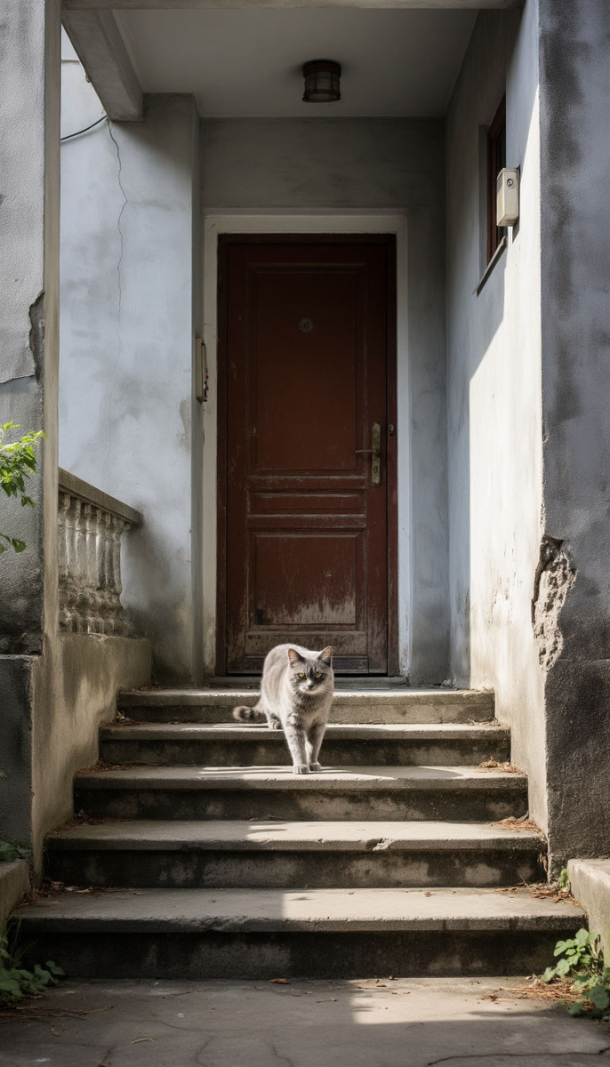 Позади неё на лестничной клетке стояла потрёпанная спортивная сумка. На боку — дыра, заштопанная красными нитками. Лампочка над головой потрескивала, будто напоминая: время не ждёт.