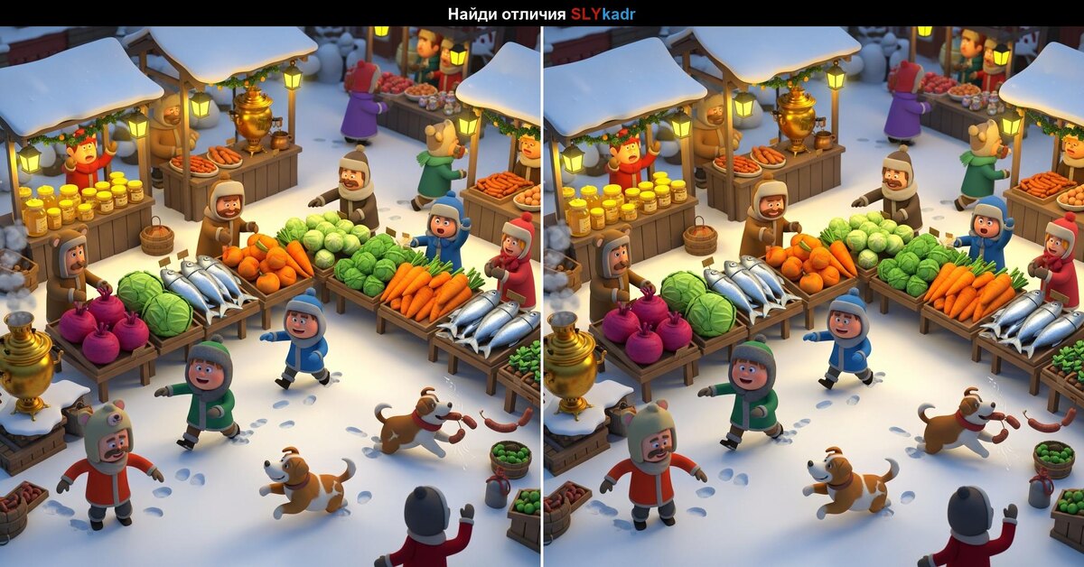 Сегодня вас ждёт тёплая и оживлённая зимняя ярмарка, где на первый взгляд всё кажется одинаковым… но это только кажется!