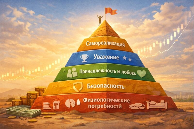 Пирамида Маслоу — одна из самых популярных психологических моделей. Её рисуют в учебниках, показывают на тренингах и используют как универсальное объяснение человеческой мотивации. Но каждый раз, возвращаясь к ней, я ловлю себя на вопросе: сколько людей сегодня вообще могут позволить себе думать выше второго уровня этой пирамиды? И не потому, что они «неразвиты» или «не доросли». А потому, что сама реальность за последние десятилетия сильно изменилась. Классическая пирамида Маслоу состоит из пяти уровней: Идея простая: пока не закрыты базовые потребности, человек не думает о более высоких. Голодному не до смысла жизни. Логично. Но есть нюанс. Если посмотреть на пирамиду Маслоу глазами инвестора, становится очевидно: в современном мире нижние уровни почти полностью зависят от денег. Еда, вода, жильё, тепло, медицина, безопасность, запас прочности на будущее — всё это в городских условиях напрямую связано с финансовым состоянием. Фактически деньги превратились не просто в инструмент, а в