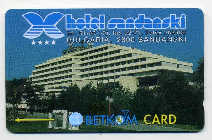 Продаю телефонная карта. Болгария. номинал 5 единиц "курорт Сандански. архитектура. отель" магнитная полоса. стоимость 30 рублей.