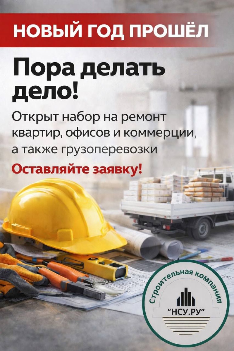 🔧 Пока другие раскачиваются, наши бригады уже в работе. Берём объекты любой сложности: жилые и нежилые помещения, офисы, коммерция. Работаем под ключ — от проекта до результата. 📩Оставляйте заявку, начнём без лишних задержек. #НСУРУ_строительнаякомпания #отделка_электромонтаж #ремонт_москва #ремонт_квартир_мо #строительство_мо #грузоперевозки_Москва Сот. +79774450377 Тел. +74991136784 внутренний по доставке номер 012