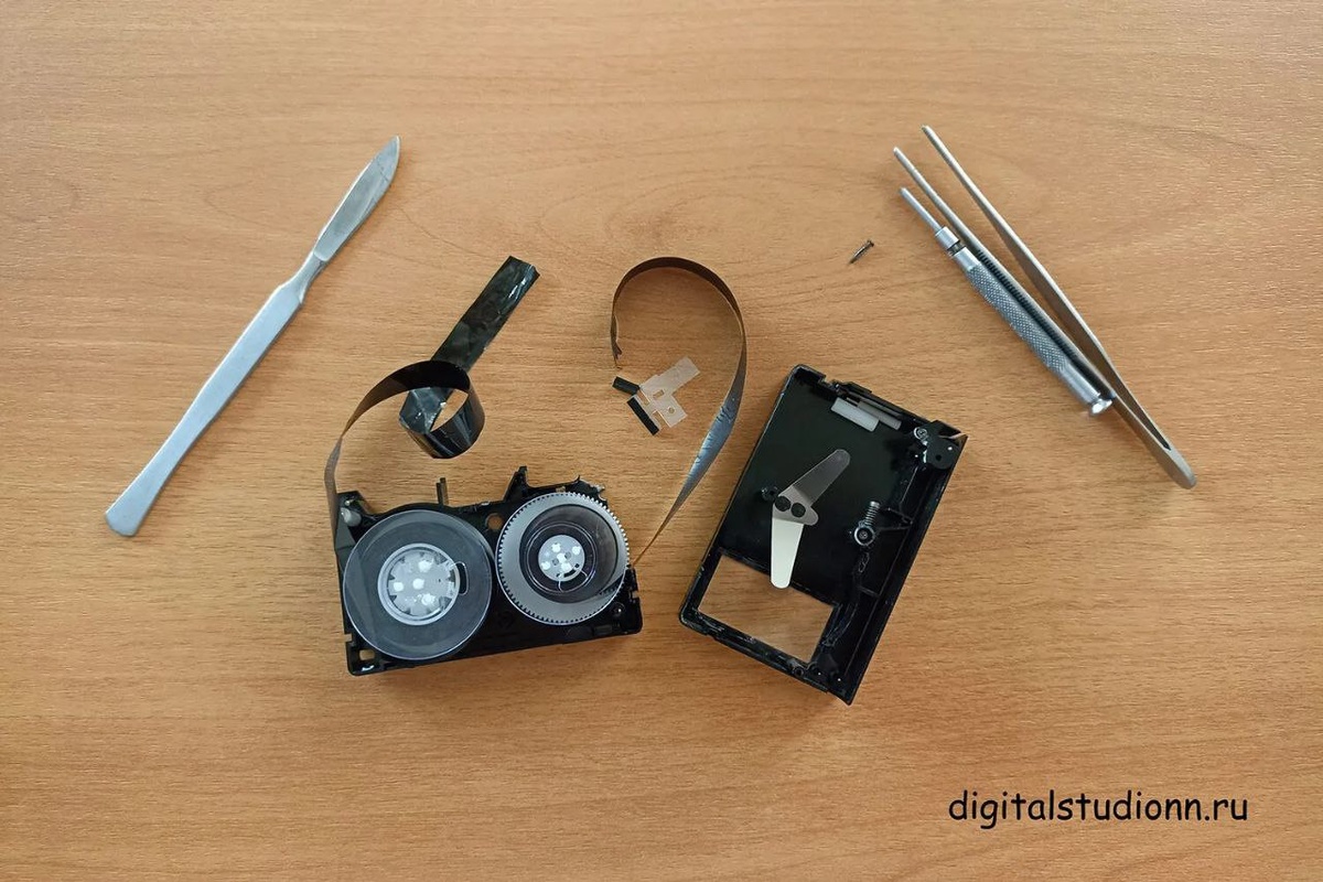 Ремонт видеокассеты, приведение в рабочее состояние перед оцифровкой. На фото: VHS-С, 1990-е гг Об этом: https://digitalstudionn.ru/remont-video-audiokasset