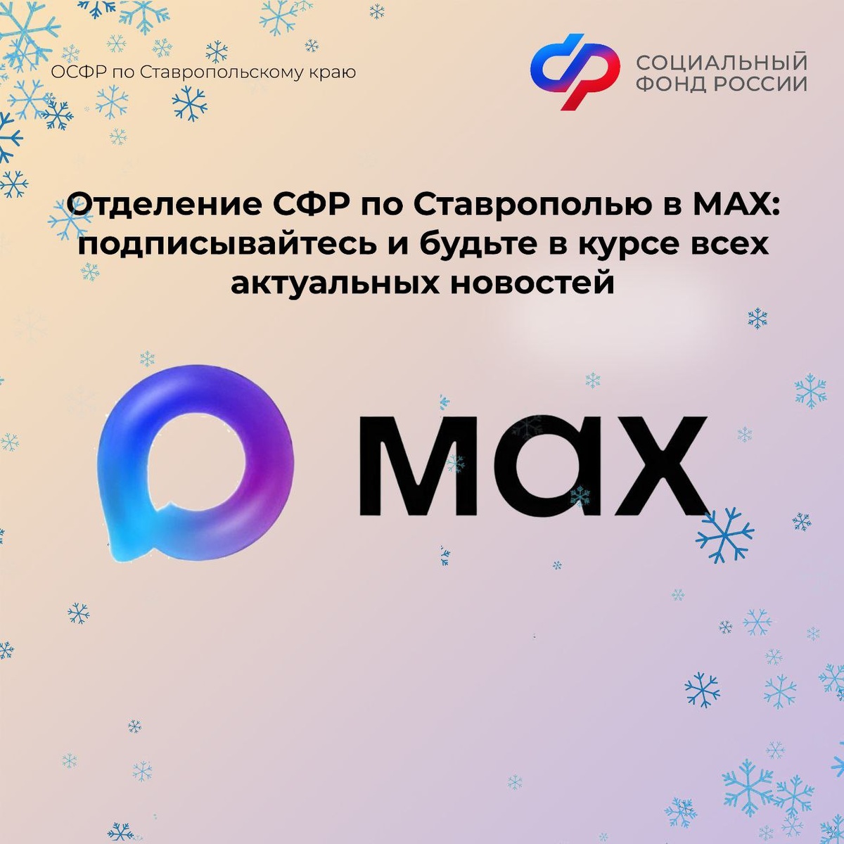 на наш официальный аккаунт в МАХ max.ru/sfr_stavkray и делитесь им с друзьями. 🧑💻Получайте самую актуальную и достоверную информацию о мерах социальной поддержки, ответы на частые вопросы, важные даты и сроки. #СФР #СФР_МАХ