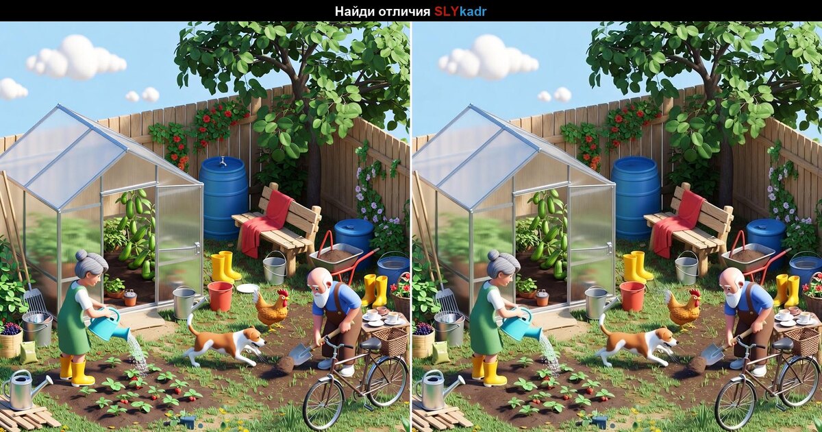 Сегодня мы заглянем в уютный дачный дворик, где кипят огородные хлопоты, бегает пёс, растут овощи и, конечно, прячутся отличия.
