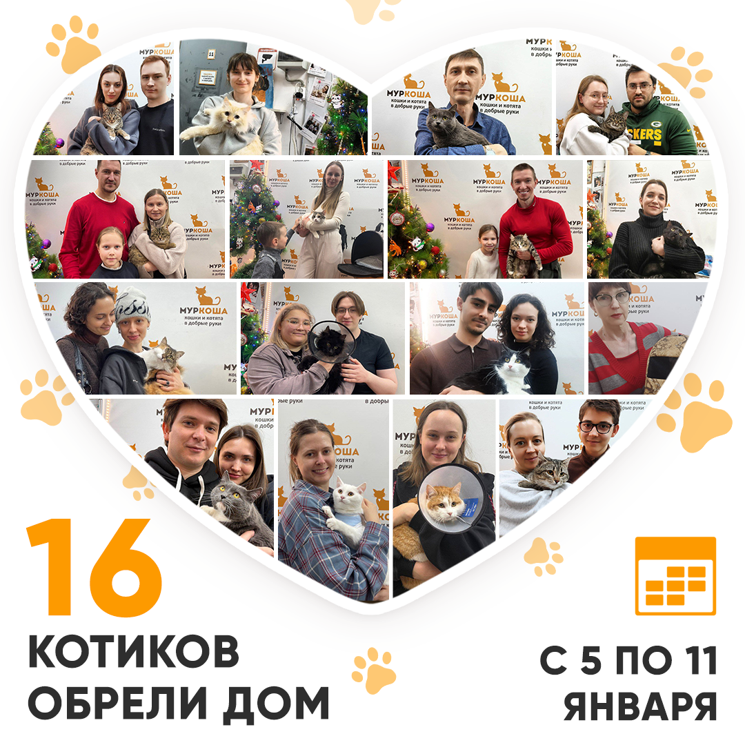 🥳 Итак, за прошедшую неделю домашними и любимыми стали 16 котиков!