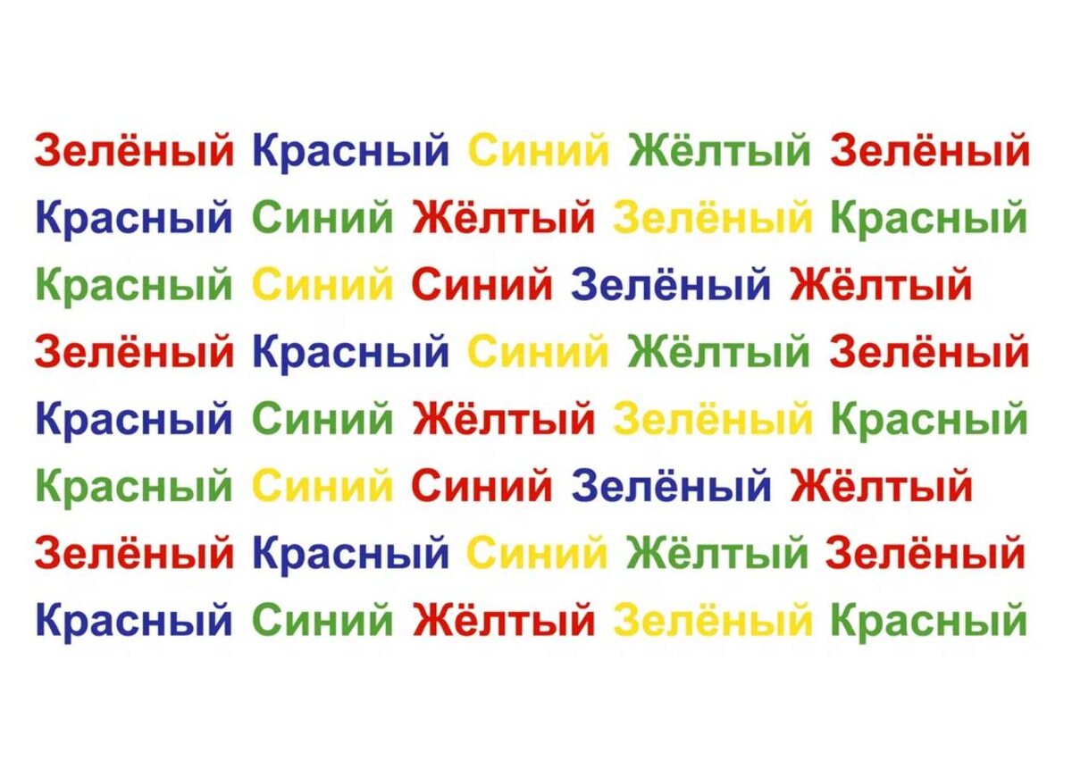 Дорогие, предлагаю сделать зарядку для мозга после долгих праздничных каникул. 🖼️На картинке вы видите слова, напечатанные различными цветами. Задача: игнорировать написанное слово и произносить вслух быстро и без остановки то слово, каким цветом оно написано. Это эффективная тренировка для мозга - тест Струпа. ✅Эффект Струпа - в задержке реакции при прочтении слов, когда цвет слов не совпадает с написанными словами (например, слово «красный» написано синим). 👍Отличная зарядка для улучшения умственной активности, концентрации внимания, памяти. Тест очень полезен для развития навыков скорочтения (использовала ранее это упражнение с дочерью) и навыка принятия решений в условиях информационного шума и манипулятивных сообщений. ❓Как в целом чувствуете себя? Есть ли энергия включиться в работу или хочется еще отдохнуть?