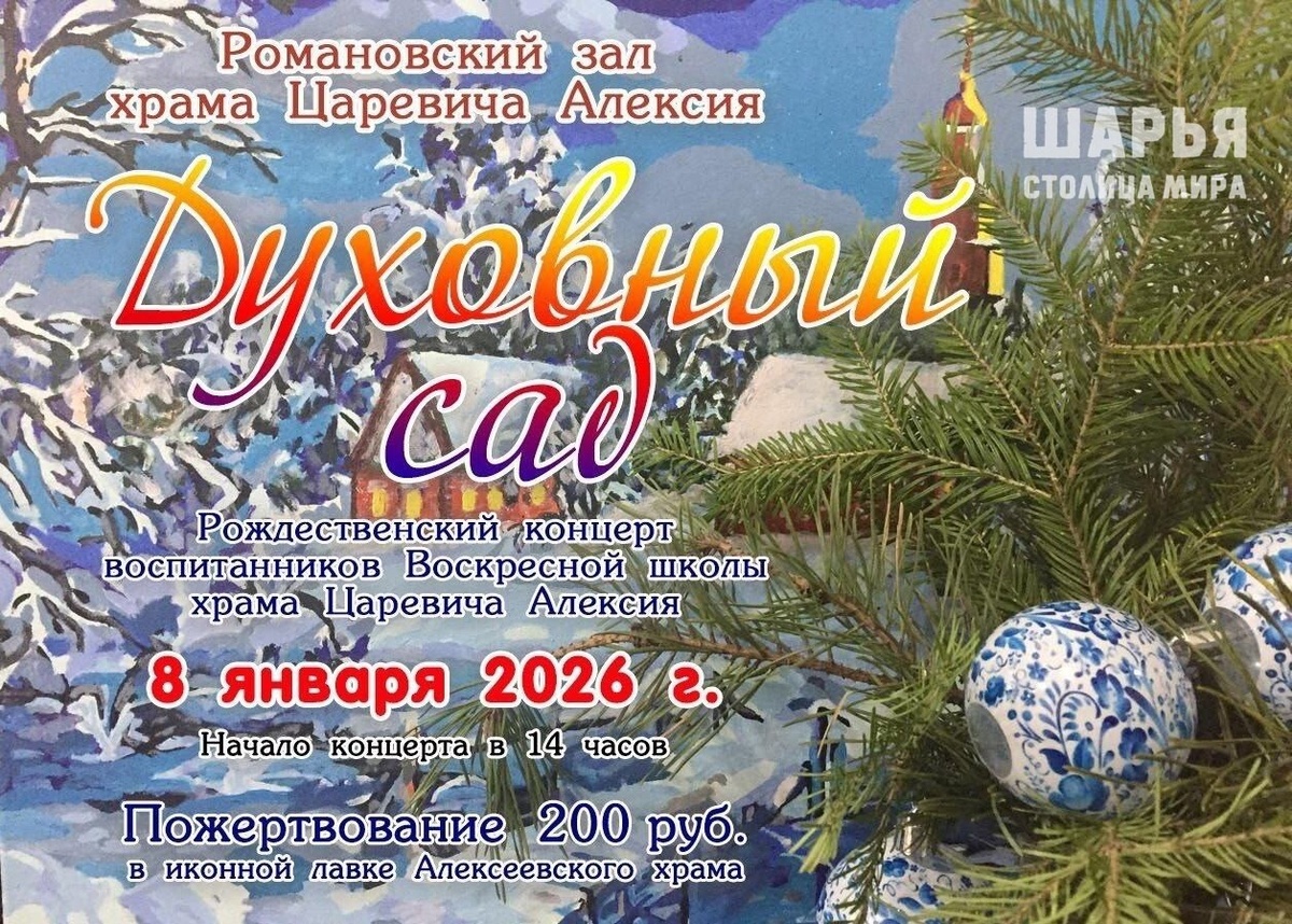 В Романовском зале храма цесаревича Алексия Шарьи 8 и 9 января пройдет два концерта. На 8 января запланирована концертная программа "Духовный сад". Выступать будет хор детей Духовно-просветительского центра при храме, хор храма святителя Николая и участники из детского сада #73 "Алёнушка". 9 января для вас на сцене Романовского зала выступит автор-исполнитель протодиакон Николай Червон. Оба концерта состоятся для всех желающих за пожертвование в 200 рублей. Кроме этого, для тех, кто не сможет 8 января попасть в Шарье на концерт духовного песнопения, есть дополнительная возможность послушать детей 10 января в ДК п. Зебляки. Ребята отправятся туда с выездным концертом. Проведите праздники с пользой и в удовольствие Шарья – столица мира Крупнейшее городское СМИ Источник: Открыть