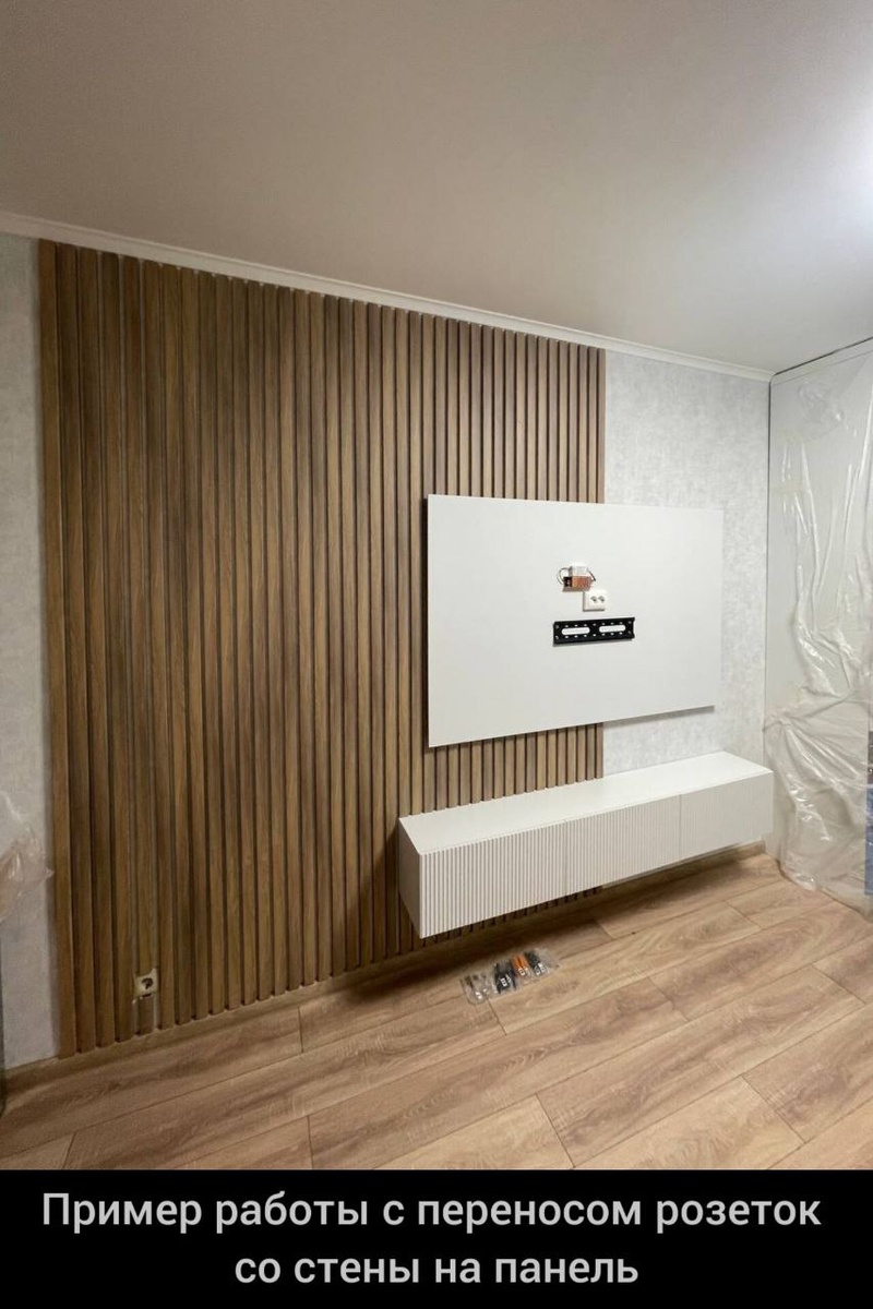 Из чего состоит проект с парящими панелями? Она должна быть из МДФ или HDF основы. Такая панель будет достаточно лёгкой, чтобы висеть без опоры, она будет стабильна в поведении спустя много лет эксплуатации, она безопасна и может иметь разную форму. Возможности по размерам: одна сторона от 400 до 1100 мм, вторая от 400 до 2400 мм. Для расчёта мы берём площадь панели (ширину умножаем на высоту) и умножаем её на стоимость за 1 кв.м. Цена за 1 кв.м. зависит от выбранной коллекции. Коллекции отличаются наличием и формой фрезеровки, габаритами, цветами и покрывным материалом. Важно! Парящие панели в ламинированном покрытии мы производим с укуткой покрытия на обратную сторону для максимальной защиты видимых торцов. За счёт неё мы и получаем эффект парения. Обрешетка должна учитывать габариты подсветки (световой ленты) и глубину другого декора на стене, если он есть (рейки, другие панели, молдинги). Для подложки мы используем мдф или фанеру. Так же на обрешетку будет влиять размер выбранных п