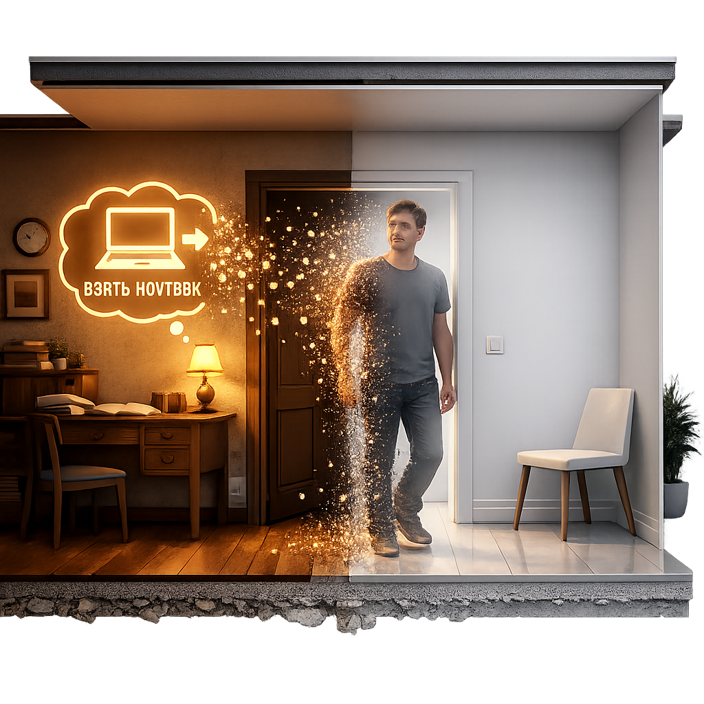 Знакомо: вы уверенно идёте из кухни в спальню за телефоном, переступаете порог… и замираете. Пустота. «Зачем я вообще сюда пришёл?» 🤔 Первая реакция — испугаться за память. Но спешим успокоить: с вашей памятью всё в порядке. Вы только что стали жертвой изящного нейробиологического феномена под названием «эффект дверного проёма» (или «boundary effect»). И виноват в нём не ваш гиппокамп, а… архитектура вашего дома. Наш мозг — великий оптимизатор. Чтобы не перегружаться, он часто работает с «событийными моделями» (event models). Представьте, что каждая комната или локация в вашем сознании — это отдельная «сцена» или «папка» с файлами. Пока вы на кухне и думаете: «Надо взять телефон из спальни», эта мысль лежит в «папке» «Дела на кухне / Текущие задачи». Как только вы пересекаете границу (дверной проём, порог, лестничный пролёт), мозг получает сигнал: «Смена обстановки!» И он, как добросовестный уборщик, очищает оперативную память (кэш) от данных предыдущей «сцены», чтобы освободить