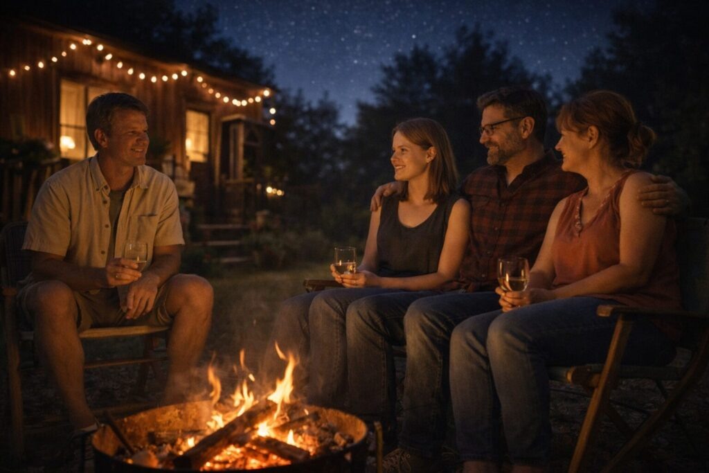 Вечером, когда дети уснули в домике, взрослые сидели у костра.