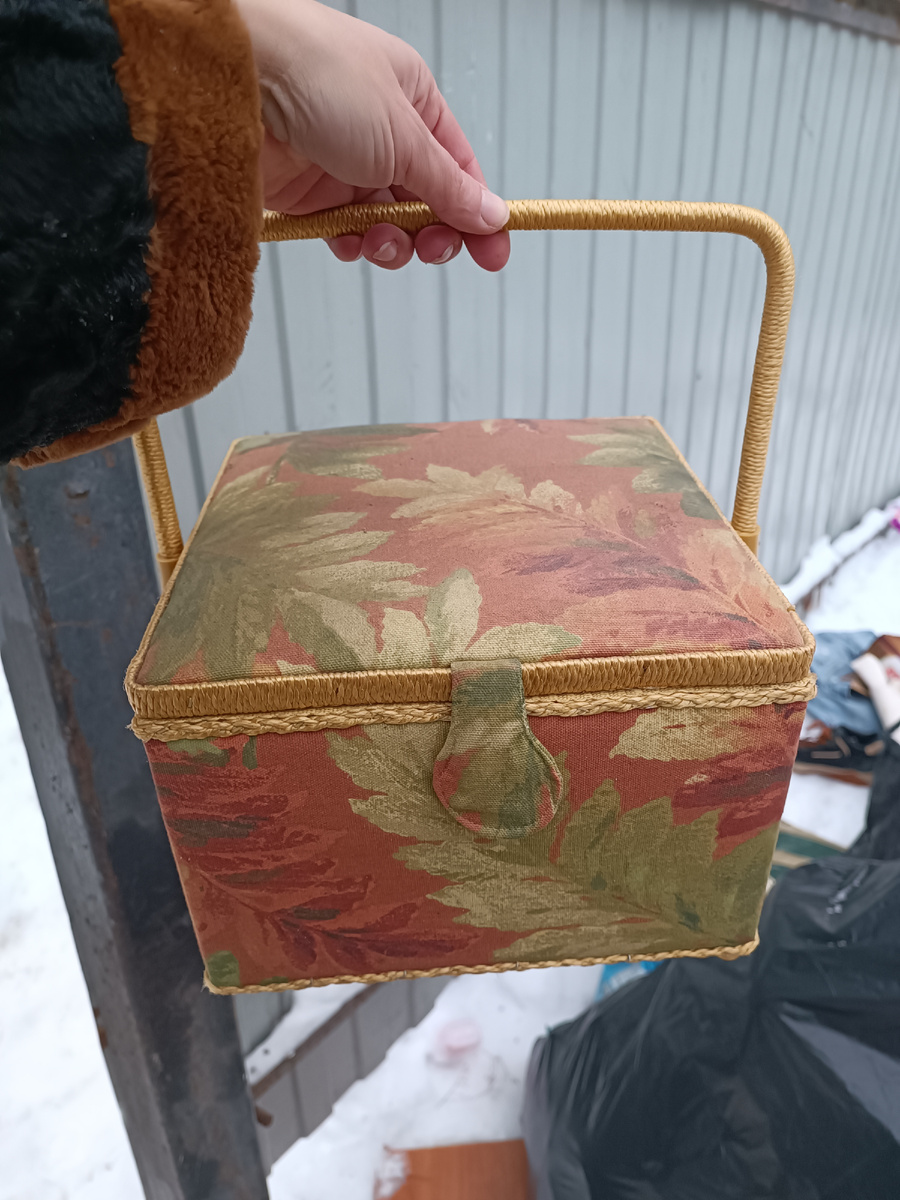 По пути прихватила гобеленовую шкатулку-корзинку для рукоделия в очень хорошем состоянии. Надо лишь почистить обивку - и сложить туда всё свои мулине💪
