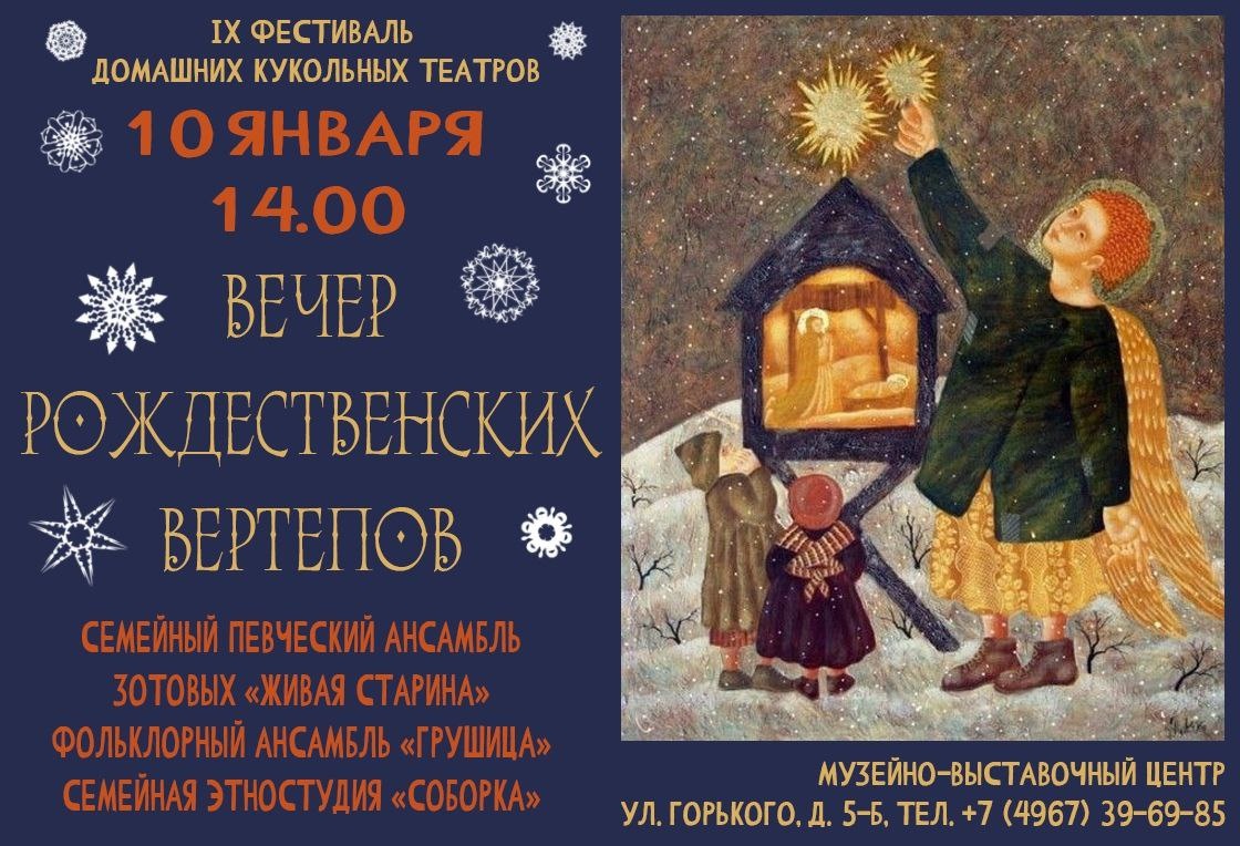 В программе 🎶семейный вертеп певческого ансамбля Зотовых ЖИВАЯ СТАРИНА, ✨вертепная мистерия в исполнении юных воспитанников семейной этностудии СОБОРКА, 💖круглый вертеп от фольклорный ансамбль ГРУШИЦА из Москвы, ✨неформальное общение с автором множества рождественских вертепов Виктором НАЗАРИТИ из Тарусы, ✨презентация разнообразных вертепов Платно, подробнее ☎️ +7(4967)39-69-85 🚫 Возраст: 6+ 📆 10.01.2026 🕒 14:00 🏢 Музейно-выставочный центр 📍 г. Серпухов, ул. Горького, 5б ⭐Поддержать канал голосом 💰 Канал Вакансии Серпухова ✅ Мероприятия Серпухов https://dzen.ru/id/66f01c6eb4c6fe60c9ca1608 http://vk.com/serpukhov_events http://dzen.ru/serpukhov_events