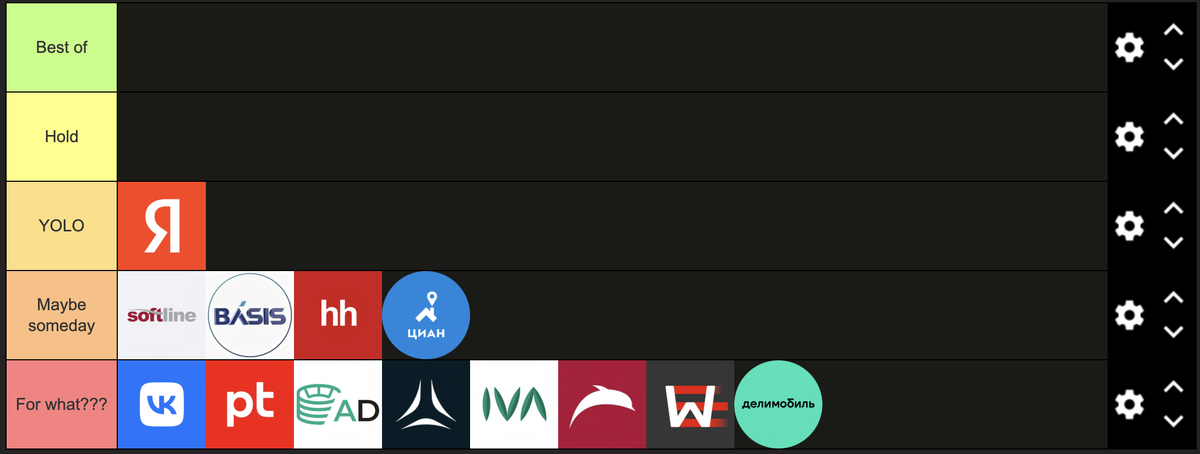 Напоминание для новых читателей о предыдущих постах: 1. Как начать инвестировать? 2. Как выбрать акции? 3. Тир-лист: алмазы, уголь, сталь Не является инвестиционной рекомендацией. IT-компании - это не лучший выбор для долгосрочного инвестиционного портфеля по ряду причин: 1. Их бизнес-модели не проверены временем и могут загнуться по одному росчерку пера ответственного лица. 2. Дивиденды ниже среднего уровня по рынку. Прибыль направляется в рост бизнеса, а не распределяется между инвесторами. 3. Производство "софта" в России дешевле, чем во многих западных странах, но российское ПО не распространяется в недружественных странах и слабо используется в других странах по причине опасения вторичных санкций. 4. Ни одна из компаний, занимающихся разработкой ПО для бизнеса (B2B), не смогла воспользоваться трендом на импортозамещение и кратно вырастить бизнес. Пару слов по отдельным компаниям в тир-листе: VK. ВТБ от мира IT, который не зарабатывает деньги, а разрабатывает государственные мессен