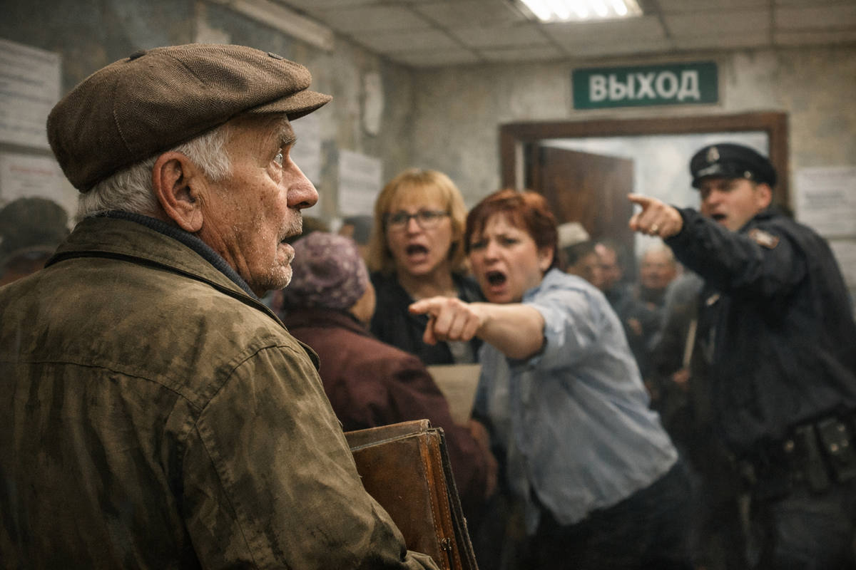 Внутри было тесно и душно. Через стеклянную перегородку слышались голоса сотрудников — резкие, уставшие, раздражённые. Уже через несколько минут из зала вышла пожилая женщина со слезами. Она пыталась что-то сказать охраннику, но тот отвернулся. Иван Петрович это заметил. Он вообще стал замечать многое. Как людям не объясняют, а отмахиваются. Как на вопросы отвечают так, будто делают одолжение. Как одного мужчину отправили «документы переделывать», не объяснив, что именно не так. Когда очередь дошла до Ивана Петровича, он зашёл спокойно, без суеты, и протянул папку.