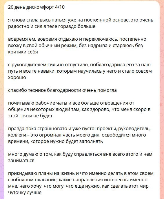 С руководителем сильно отпустило, поблагодарила его за наш путь и все те навыки, которым научилась у него и стало совсем хорошо