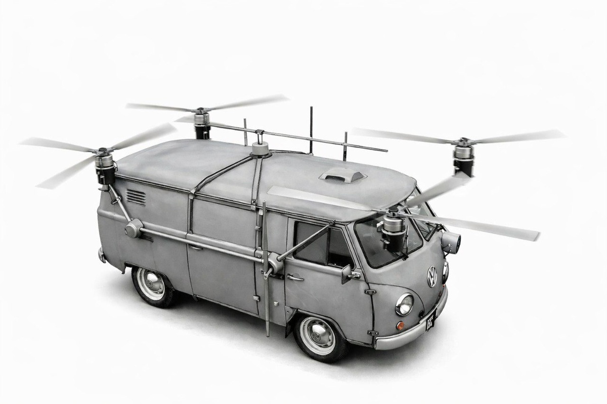 Суть проста до гениальности: на крыше, спереди, сзади и по бокам автомобиля устанавливают электромоторы с длинными лопастями. Они вращаются со скоростью до 600 оборотов в минуту — это десять оборотов в секунду. Представьте: метровая лопасть, мелькающая перед глазами, как лезвие циркулярной пилы. И всё это — вокруг машины.
