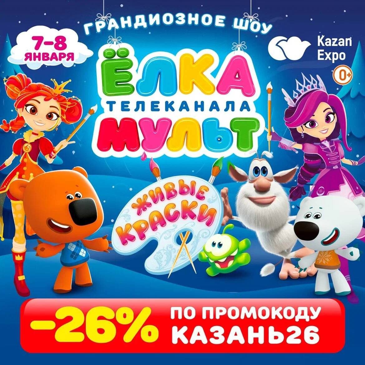 ! На новогоднее представление «Ёлка телеканала МУЛЬТ» действует скидка 26% 🎁 Используйте промокод КАЗАНЬ26 при покупке билетов — и волшебство станет ещё ближе ✨ 📅 Даты шоу: 7 и 8 января 🎠 Любимые герои, интерактивы, музыка и настоящая новогодняя сказка ждут всю семью! 🎟 Билеты и выбор мест — на сайте: vk.cc/cQOFT9 Успейте воспользоваться предложением! Зрителей ждут: 🎭более 20 ростовых кукол любимых мультгероев; ⭐ свыше 30 артистов на сцене и в зале в фантазийных костюмах; 🪄 современный 3D-мэппинг, лазерное шоу; ✴ огромный надувной реквизит и живой интерактив в зале каждые десять минут. 📚Захватывающая поучительная история с глубоким смыслом под завораживающую музыку от ведущих композиторов, с умным юмором «выше плеч», понятным и детям и взрослым. 🎄Шоу “Елка телеканала МУЛЬТ” не просто развлекает, оно помогает родителям объяснить детям простые и важные вещи: насколько важно творчество, что такое добро, почему важна семья и как ценить поддержку. 🎄Это уникаль