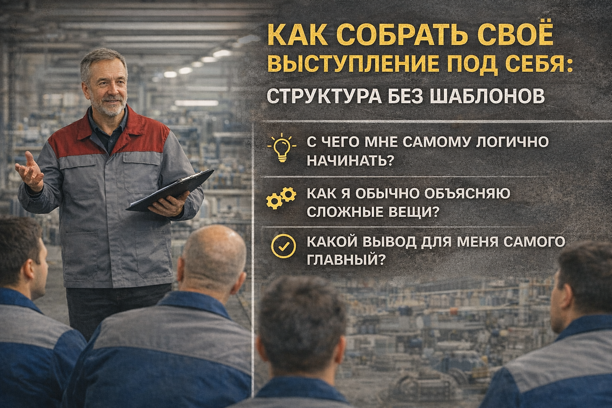 Потому что шаблон не учитывает: В результате структура есть, а живого смысла нет. Речь становится механической, а аудитория это чувствует. Правильная структура нужна не аудитории — она нужна самому руководителю.