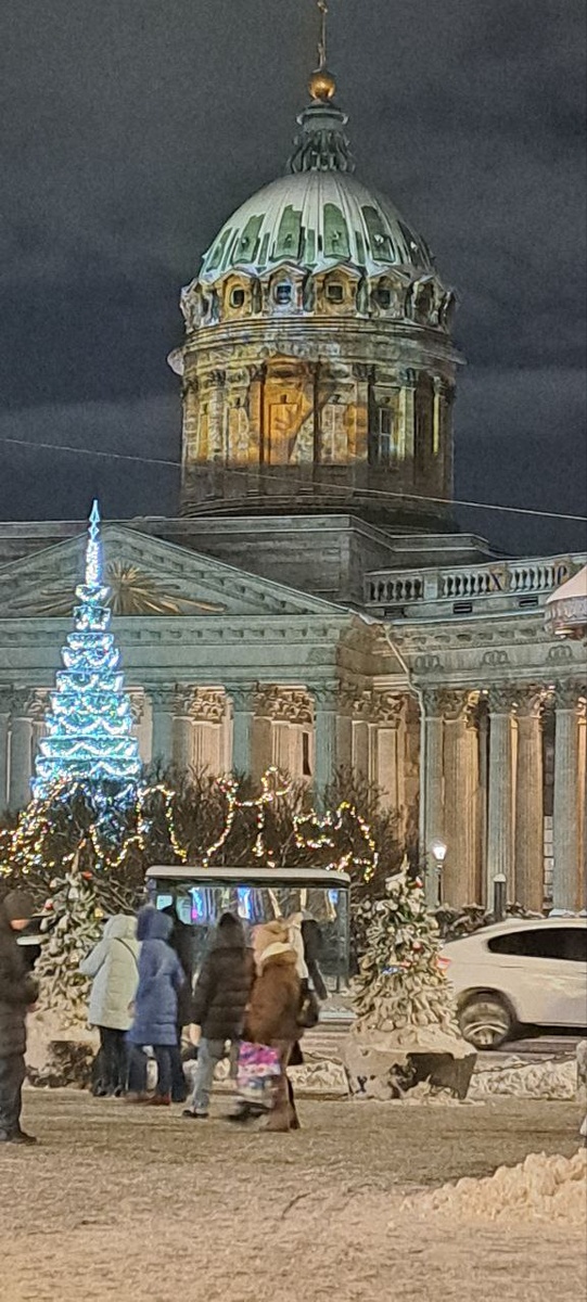 НЕВСКИЙ ПРОСПЕКТ. КАЗАНСКИЙ СОБОР. Невский проспект, несмотря на позднее время и мороз, многолюден. И не только гости нашего города гуляют по Невскому проспекту, но и местные жители. Город украшен огнями, игрушками, ёлками. На Казанском соборе на колонаде светится лик Казанской божьей матери с младенцем. #питер #невскийпроспект #казанскийсобор
