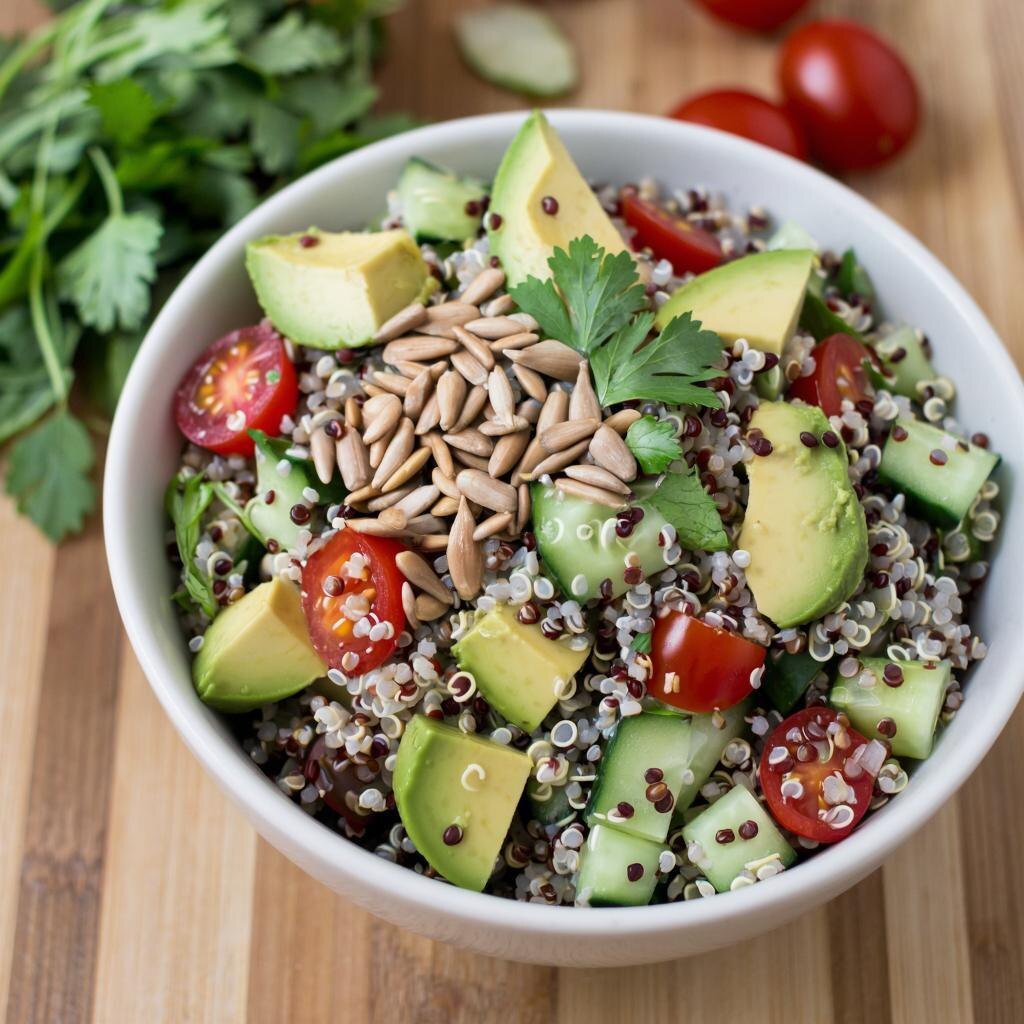 Волшебный салатик из киноа, авокадо и семян подсолнечника!