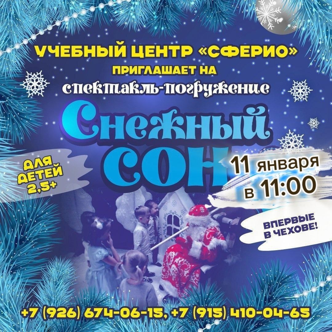 ✨ ❄️✨Снежный сон уже побывал в Учебном центре СФЕРИО✨❄️ Интерактивный спектакль подарил детям радость, и настоящее ощущение сказки☃️ 🎭Зрители не просто смотрели — они участвовали, и проживали эту зимнюю историю вместе с героями✨ 👉Если вы не успели—у нас отличная новость! 📅11 января состоится ещё один показ ❄️ Не откладывайте — подарите ребёнку зимнее чудо💫 📆 11.01.2026 🕛 11:00 🏢 Учебный центр "Сферио" 📍 г. Чехов,ул. Полиграфистов, 6 (Вход со двора, подъезд 2, этаж 3) 🔗 Записаться: https://t.me/UZentrSferio2024 Наши соцсети 📲⬇️ ➡️ ВК https://vk.com/sferio_kids ➡️ ТГ https://dzen.ru/id/672e115c65592e5989376c34 ➡️ Продленка https://vk.com/prodlenkachehov ➡️ Школа https://vk.com/sferio_school 🎁Забрать подарок:🎁 https://t.me/bot_sferio_bot 💥 Подпишись и получи подарок 💥 Наша What'sApp группа