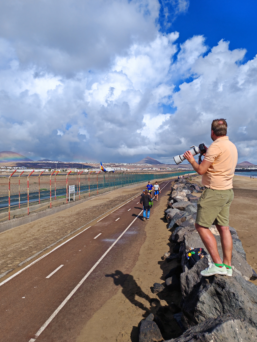 Особенность аэропорта Ланцероте в том, что полоса идет прямо вдоль берега. Сначала пляж, потом пешеходная и велодорожка, а потом через 100 метров полоса...