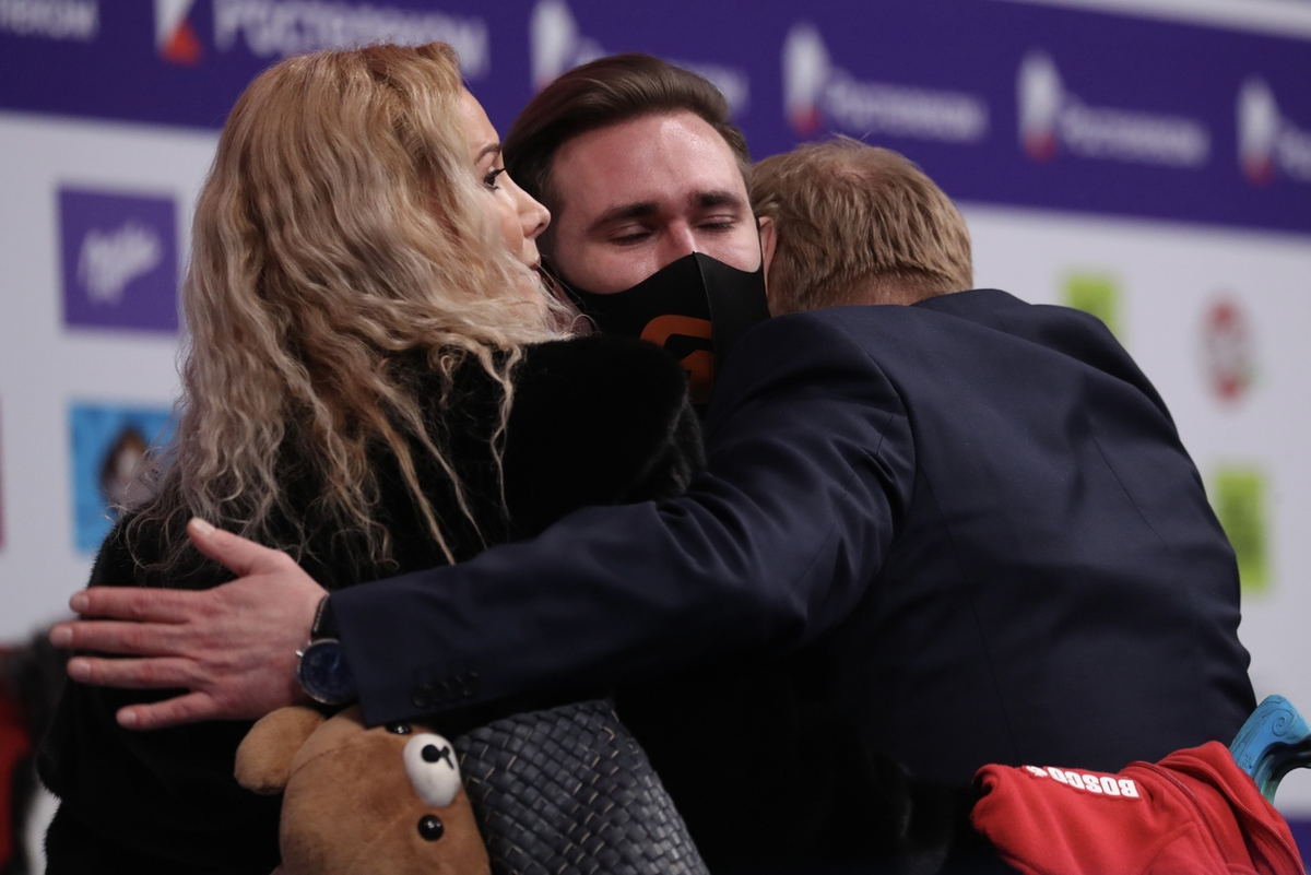 Даниил Глейхенгауз: Это было что-то такое сверх, за гранью. То есть, сложно было поверить в то, что всё так сложится и будет такой прокат. Мы всегда думаем не только о результате и оценках. Нам важно, как откатает наш спортсмен, насколько это будет чисто, идеально по подаче, по эмоциям, по всем элементам, уровнем. Когда это всё совпадает с таким состоянием, в котором она была, это нас растрогало и поразило.