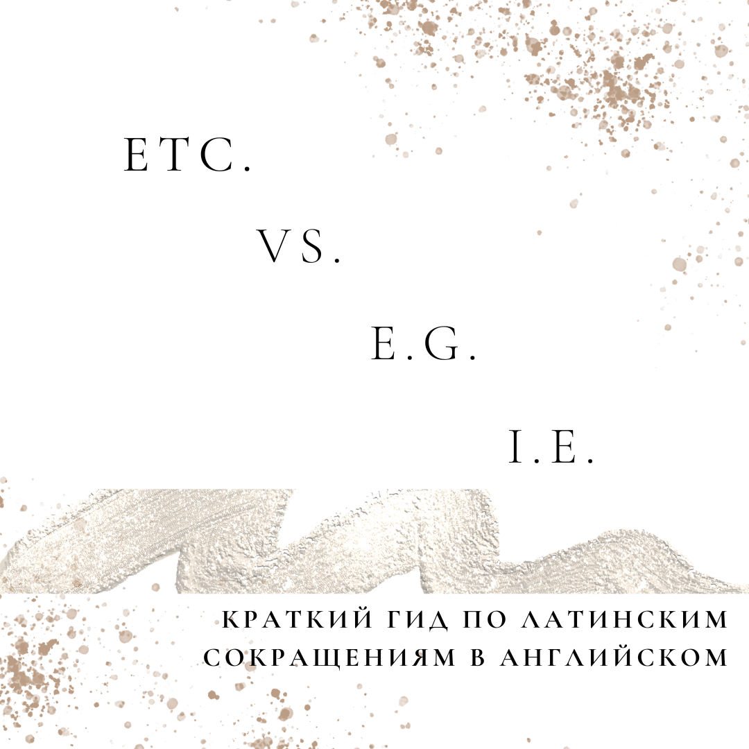 Периодически попадающиеся сочетания букв с точками в английском часто вызывают некоторое непонимание у изучающего английский. Это неудивительно, учитывая, что эти сокращение далеко не всегда английские, а, например, заимствованные из латыни. Рассмотрим наиболее популярные: Etc. - et cetera - и так далее. На английском так и читаем [et ‘setra] Частая ошибка употреблять etc. вместе с and, так как по-русски мы говорим «И так далее». В английском это неверно - употребляем только etc. в конце, так как оно уже содержит «и» и переводится «и так далее». E.g. - exempli gratia - например. Есть вариант читать по буквам [iːˈdʒiː], но в большинстве случаев читается на английском - for example. I.e. - id est - то есть. Можем читать, как написано [ai ‘i:], или использовать английский эквивалент = that is vs. (иногда просто v.) - versus - эта часто встречающаяся аббревиатура, на самом деле, является предлогом «против» и используется при сравнениях каких-то понятий /идей, либо в противостояниях групп,