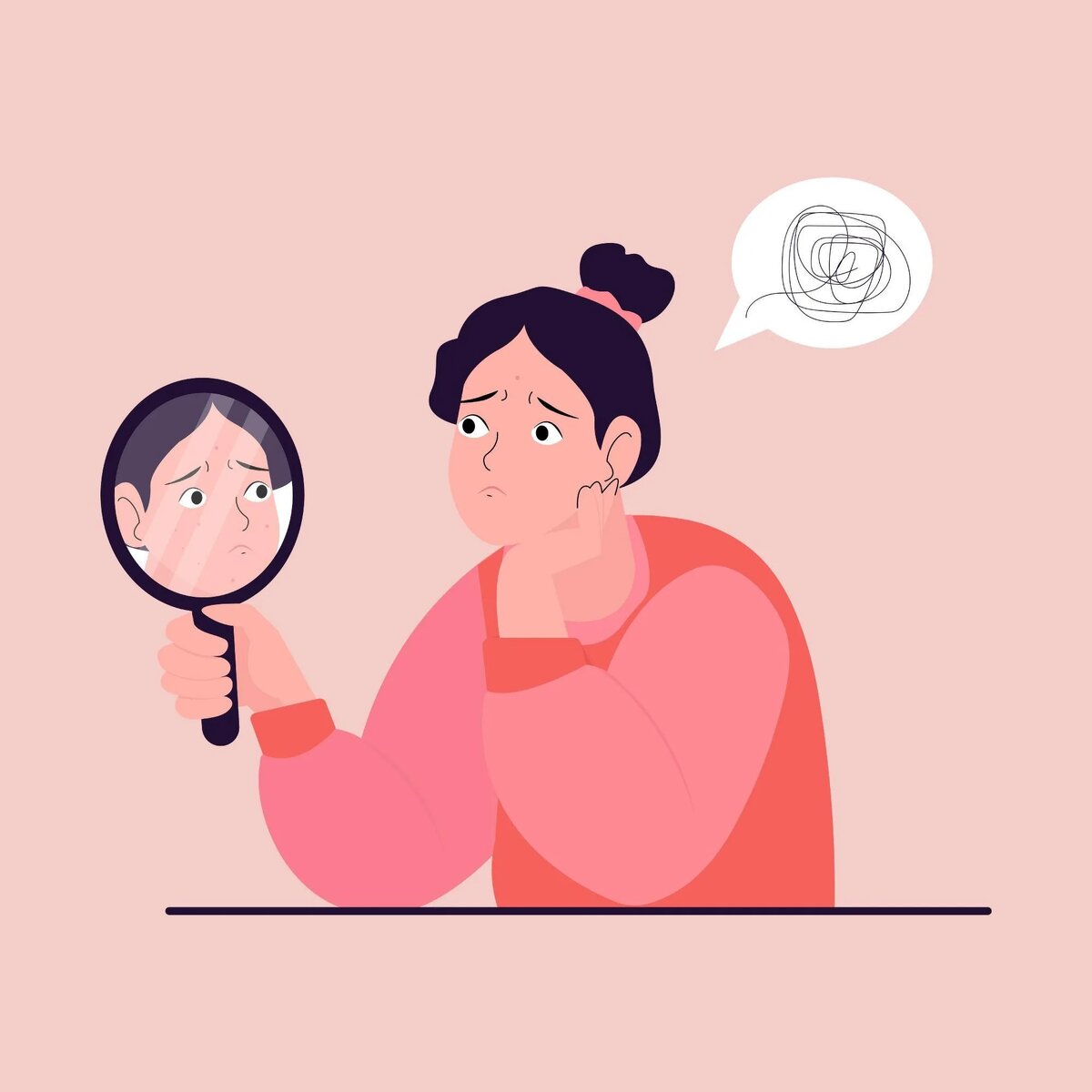 1. Многочисленные проверки и осматривания себя в зеркале, поиск выгодного ракурса, когда дефект будет менее заметен;