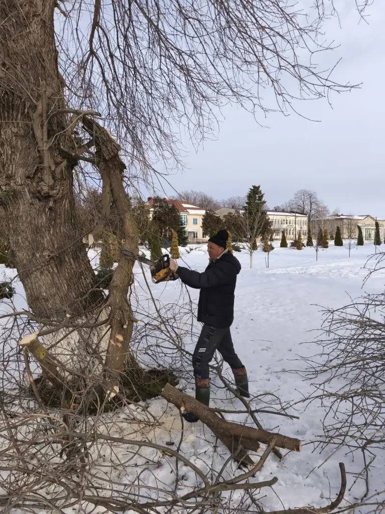 Производится опилка деревьев и сломанных веток.