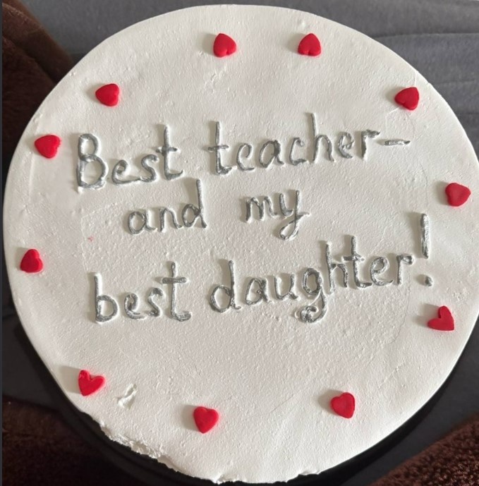 На день учителя подарила дочке, репетитору английского, тортик, который заказала в саратовской кондитерской "Замок любви".
